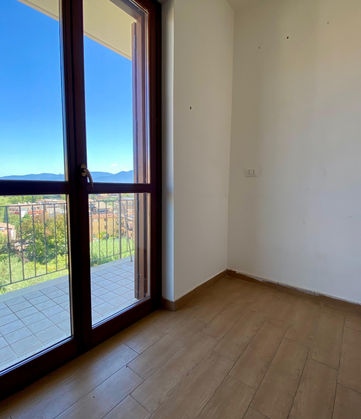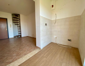 Al primo livello, l’immobile si compone di un ampio e luminoso soggiorno/pranzo con cucinotto a vista, una camera da letto, un disimpegno, un bagno e un grande balcone perimetrale. Sia la zona giorno che la zona notte accedono al balcone, creando un comodo spazio esterno ideale per momenti di relax.